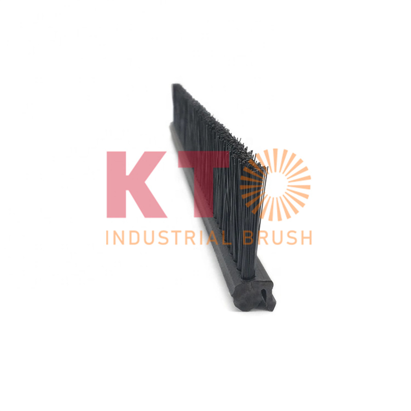 Escalator Safetystrip brush defector system provides a tactile reminder to passengers to prevent sidewall entrapment accidents on moving escalators and walkways.